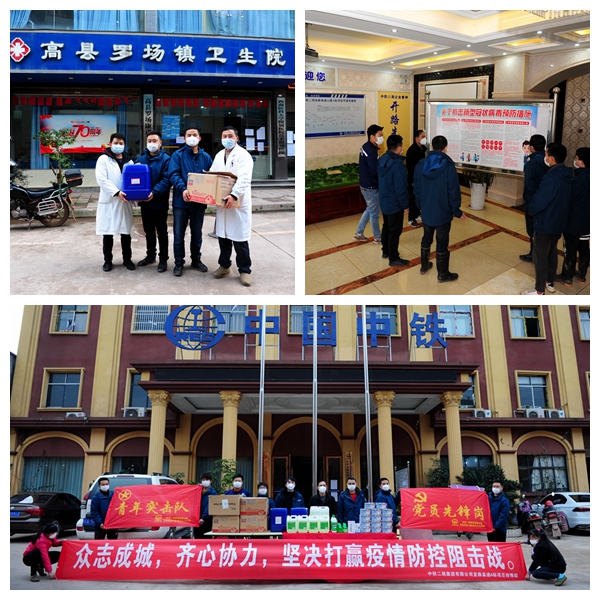 听说驻地所在的场镇缺少疫情防护物资,宜彝项目随即迅速行动,从2月4日起,在项目经理吴洪文立即与副经理何正坤,副总工刘文强等党员组成党员突击队,紧急开展抗击疫情相关工作。为了帮助罗场镇解决防护用品难题,党员突击队从成都及周边紧急采购20桶消毒水、4桶酒精,12400个口罩,120瓶洗手液等防疫物资,由两辆满满装载着防疫物资的汽车紧急驰援罗场镇,并为当地老百姓提供应急防控、物资保障、技术咨询等服务。