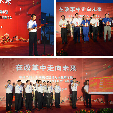 6月30日晚,公司在成都地铁7号线项目部召开庆祝建党九十三周年暨“宣贯深化改革精神、喜迎建企五十周年”主题报告会,回顾党的奋斗历程,领会中国中铁、中铁二局改革精神。集团公司党委书记邓元发、集团公司工会主席张文杰、集团公司党群各部门负责人、公司领导班子成员、成都地区项目党员及干部员工代表200余人参加活动。