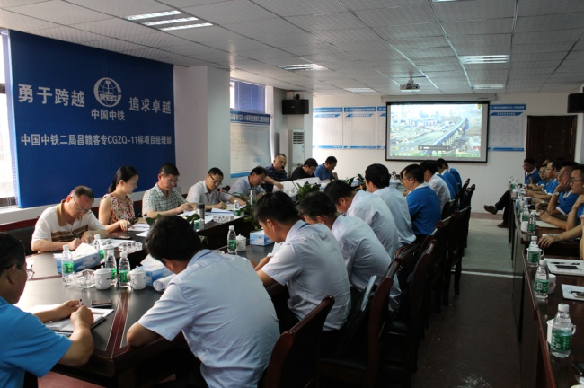 现场检查结束后,郭总一行在项目部会议室召开了大临工程建设专题研讨会。会议对制梁场选址变化问题进行了深入研究,明确了项目部下一步施工生产推进措施,并对项目部新塘隧道进口改移问题及黄峰山隧道出口浅埋地段施工方案进行了协调。