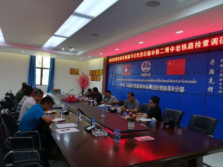 7月15日,老挝国家纪委副书记坎苏莅临中铁二局六公司承建的中老磨万铁路Ⅵ标项目进行调研检查,老中公司联合党工委肖乾文书记陪同。