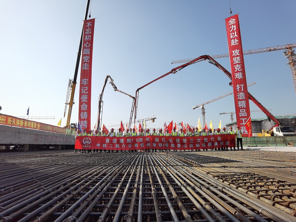 5月24日8时18分,中铁二局六公司承建的杭州地铁1号线三期工程萧山机场站最后一块顶板混凝土开始浇筑,提前6天完成“5.30”主体结构封顶节点目标,标志着全国在建最宽三线合一单体车站主体结构施工圆满完成,为建局70周年和公司第三次党代会隆重献礼。