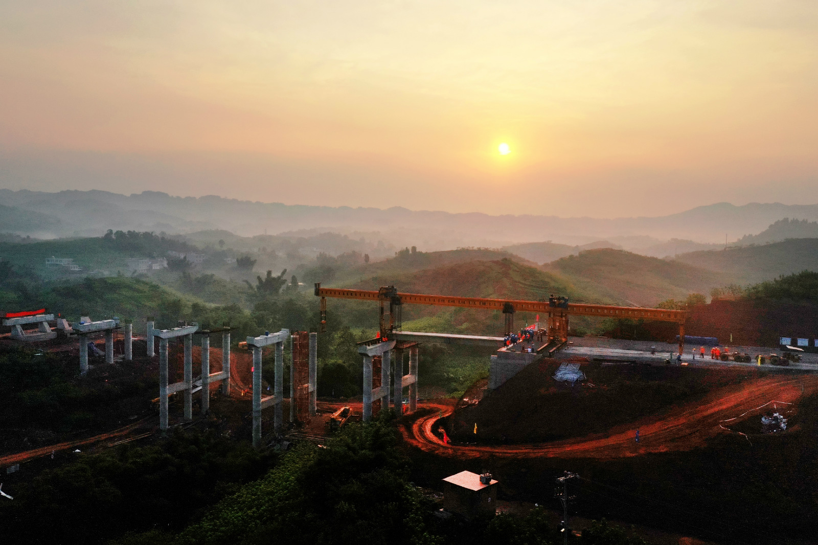 2020年8月28日,中铁二局第六工程有限公司宜彝高速公路4标项目曲尺田大桥施工现场鞭炮齐鸣,一片25米长,80余吨重的箱梁由DJ160(A3)型架桥缓缓地平移至桥墩盖梁支座垫石上,在经过现场施工人员半个多小时的齐心协力下,首片箱梁成功架设,这不仅是宜彝高速二号制梁场进行的首片箱梁的架设,也标志着标段节点施工进入全新的阶段。