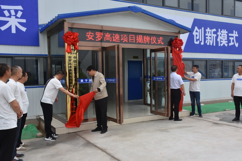 5月14日,河南省鹤壁市交通运输局局长张存福、善堂镇党委副书记为公司承建的中铁二局安罗高速豫冀省界至原阳段SG-2项目经理部(以下简称“安罗高速项目经理部”)揭牌,标志着项目施工建设驶入快车道。