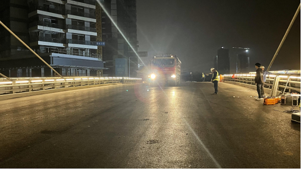 11月5日凌晨2点,在多方单位的共同努力下,瑞林南巷等5个项目-嘉州路Q7桥梁成桥荷载试验检测工作顺利完成,检测合格。