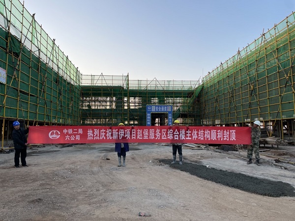 11月18日,新伊高速项目赵堡房建综合楼主体结构顺利封顶,提前十天完成节点目标!